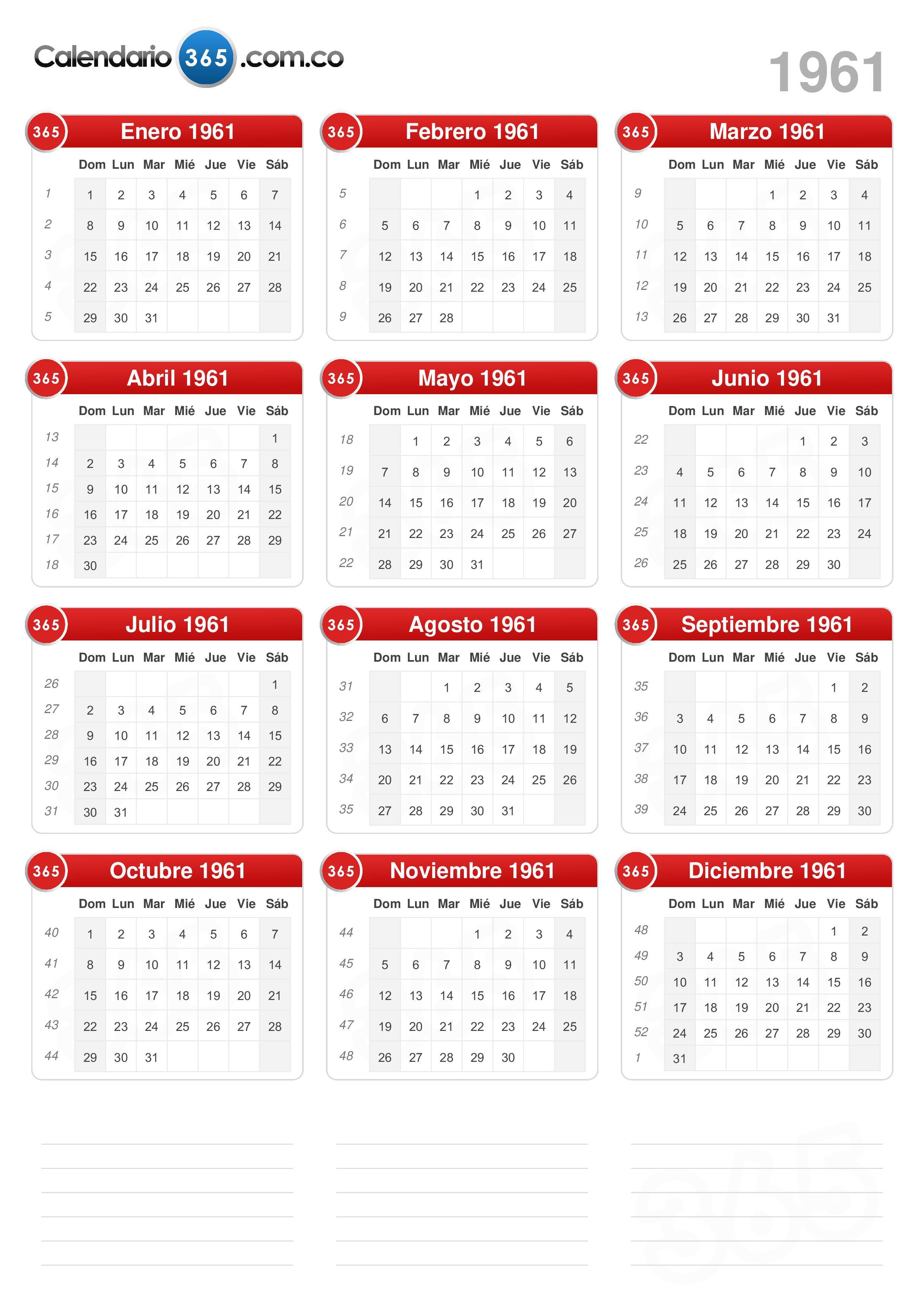Acerca del calendario 1961